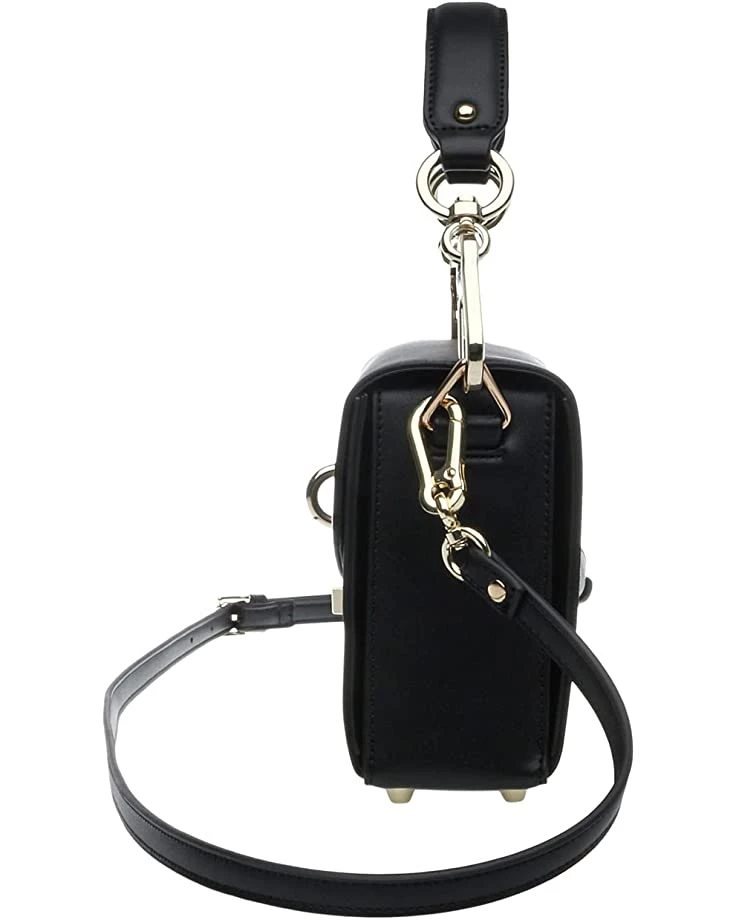 - Top handle box bag design with turnlock closure.